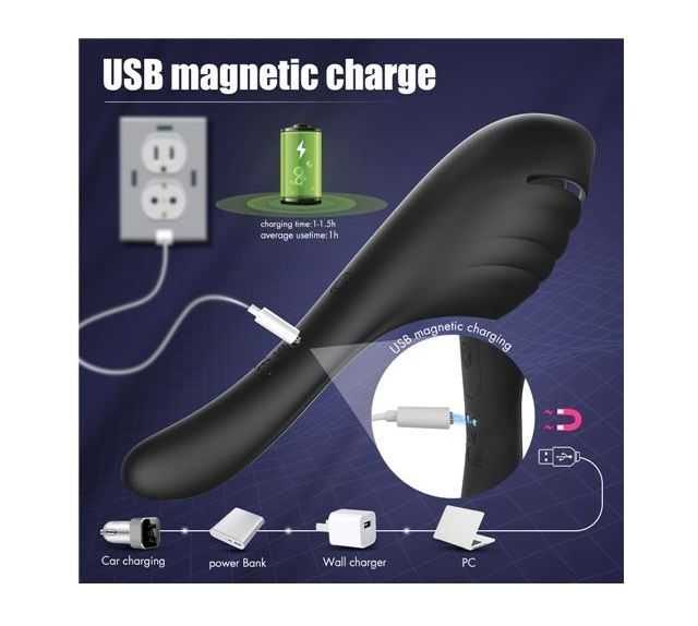10 modos e intensidades de vibración. Carga USB