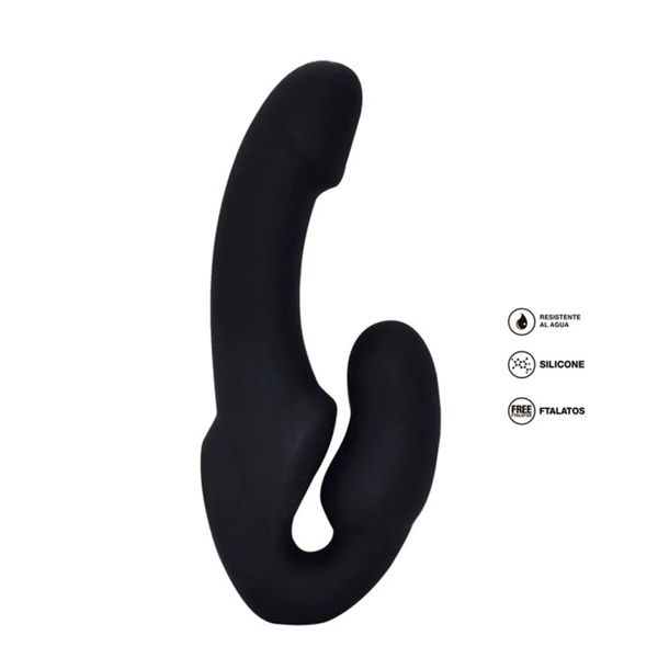 Ideal para pegging o penetración, su diseño permite que la pareja inserte el extremo mas pequeño por vía vaginal y lo sostenga con sus músculos pubocoxigeos. Silicona 100 % .