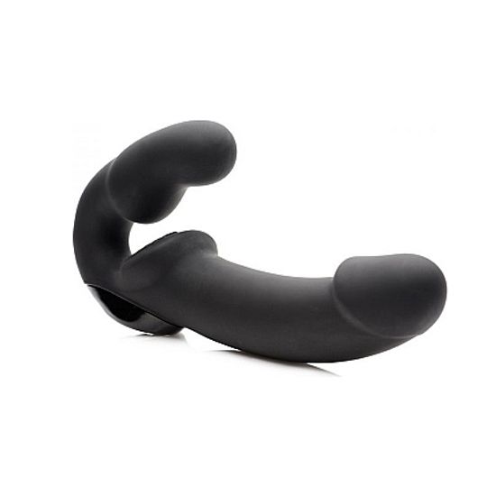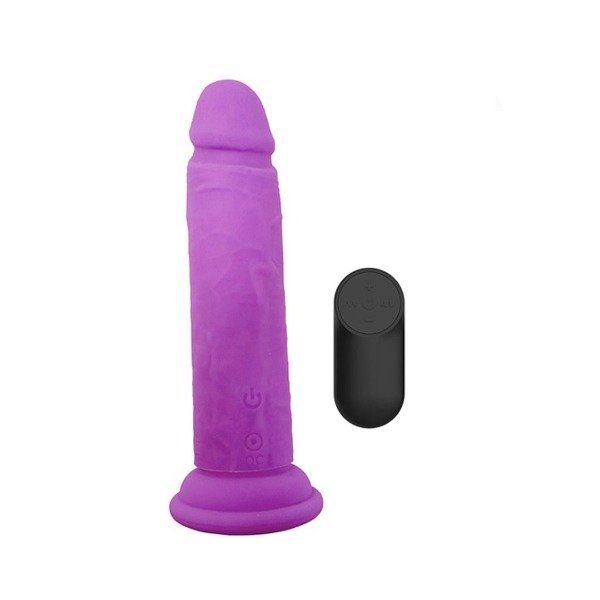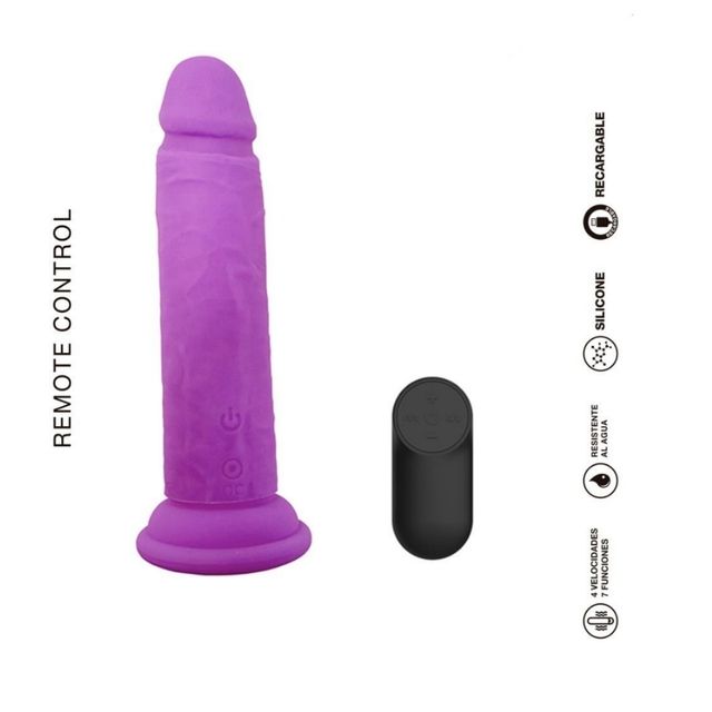 Vibrador recargable de silicona suave y tersa. Ideal para usar con arnés. Incluye control remoto inalámbrico para poder jugar con total libertad.