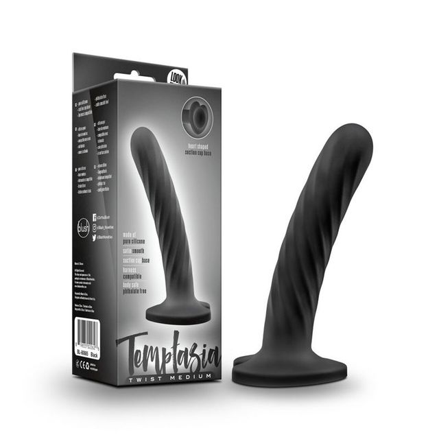 El Temptasia Twist Medium presenta un perfil delgado y una textura arremolinada. La bonita base en forma de corazón incluye una ventosa fuerte y es compatible con arnés.